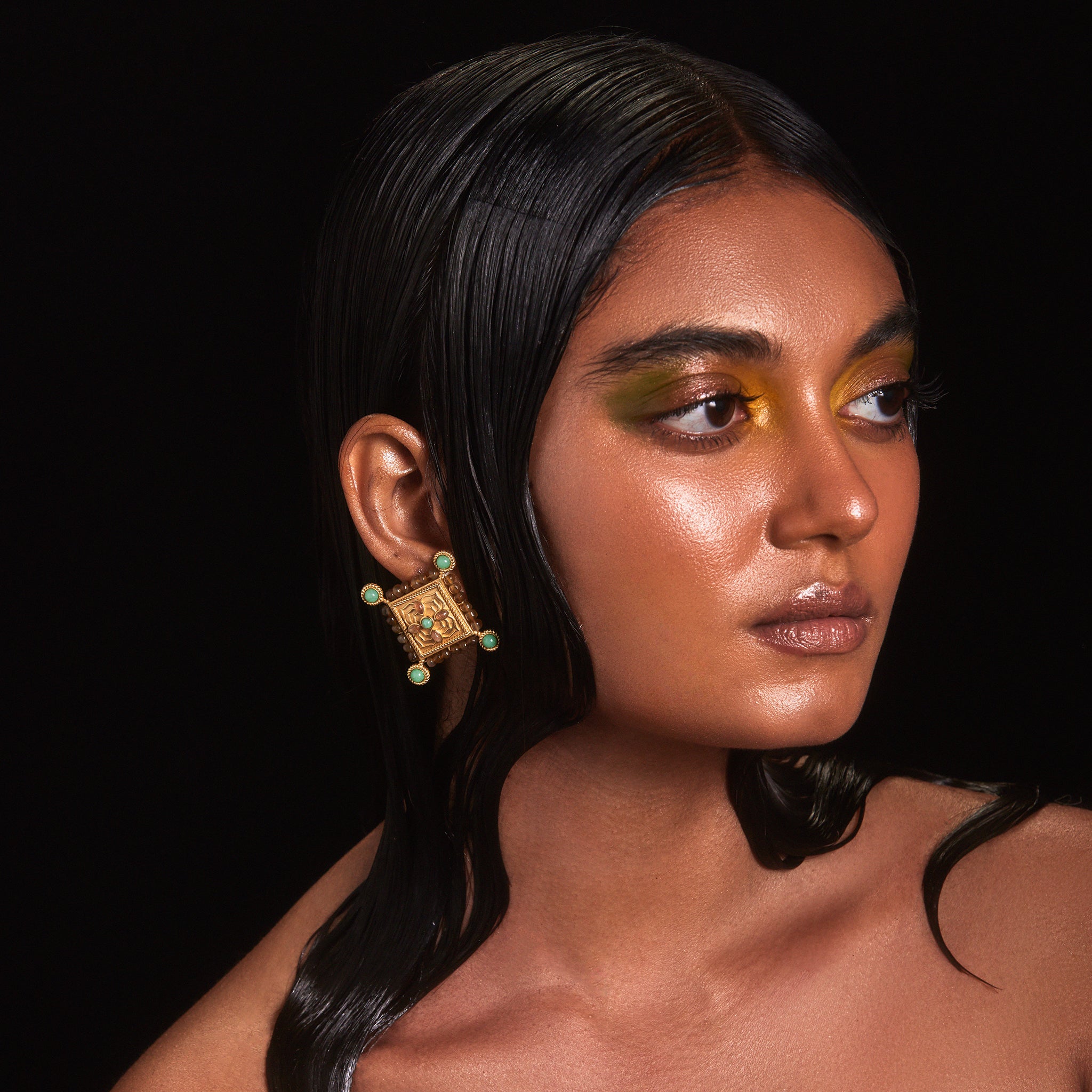 The EssenceMeticulously chosen stones like chrysoprase, yellow onyx, and sun stone come together in an unexpected silhouette to create this bold pair of studs. Consciously MadeYou are avoiding the generation of approximately 40,000 kg of toxic waste & 700 kg of CO2 emissions, that mining gold for this jewel would have caused.