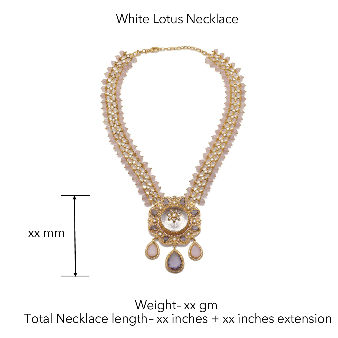 Featuring a clear-crystal center-stone as brilliant and pure as the white lotus surrounded by carved petals, this floral-inspired pendant cascades from ropes made of pastel buds.