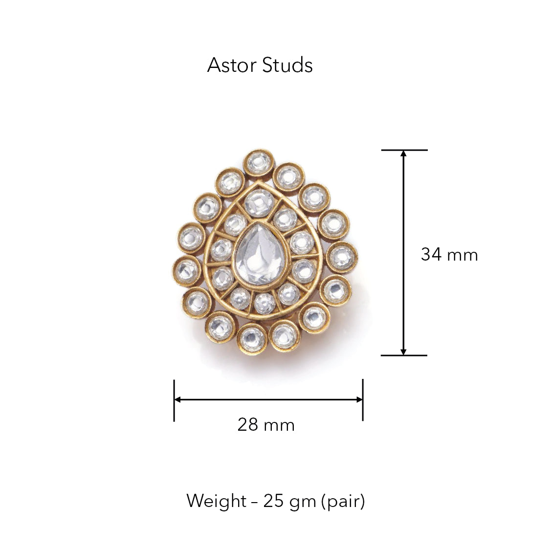 A drop of moonlight crafted out of round and pear-shaped high-grade zirconia-kundan stones, this pair of studs is an ethereal piece of jewelry. Pair it with the Luna Necklace to complete your look.