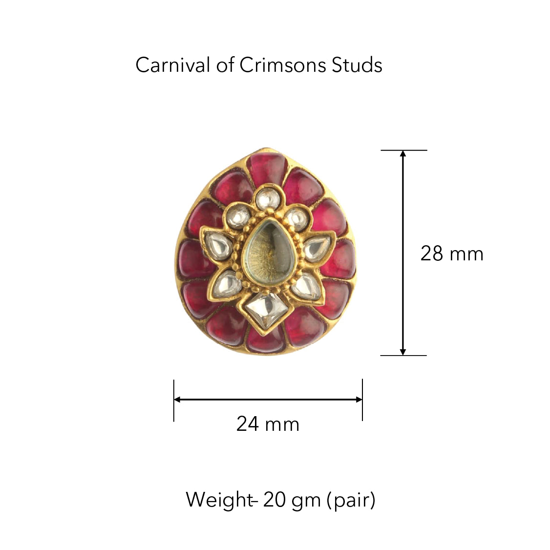 This exquisite bridal suite of romantic reds symbolizes new beginnings. This pair of statement studs featuring 26 carats of meticulously chosen semi-precious crimson stones adds a hint of understated luxury to your entire look.