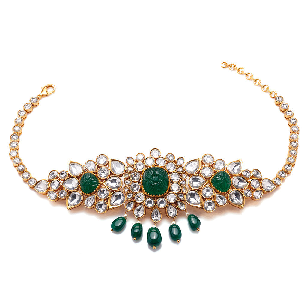A mix of modern setting and age-old technique of hand-carved stones totalling 48.5 carats. Style this choker with any outfit, Indian or western, to make heads turn.