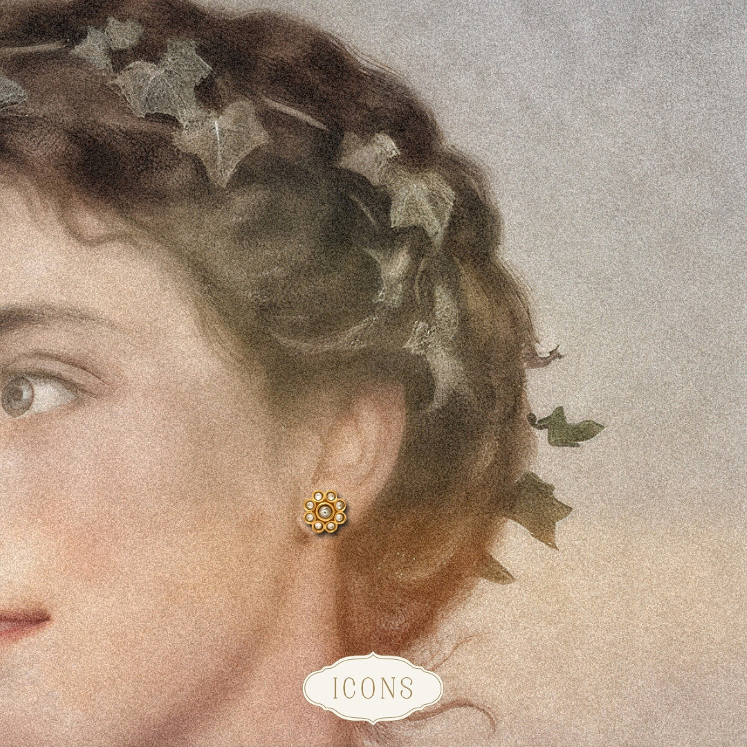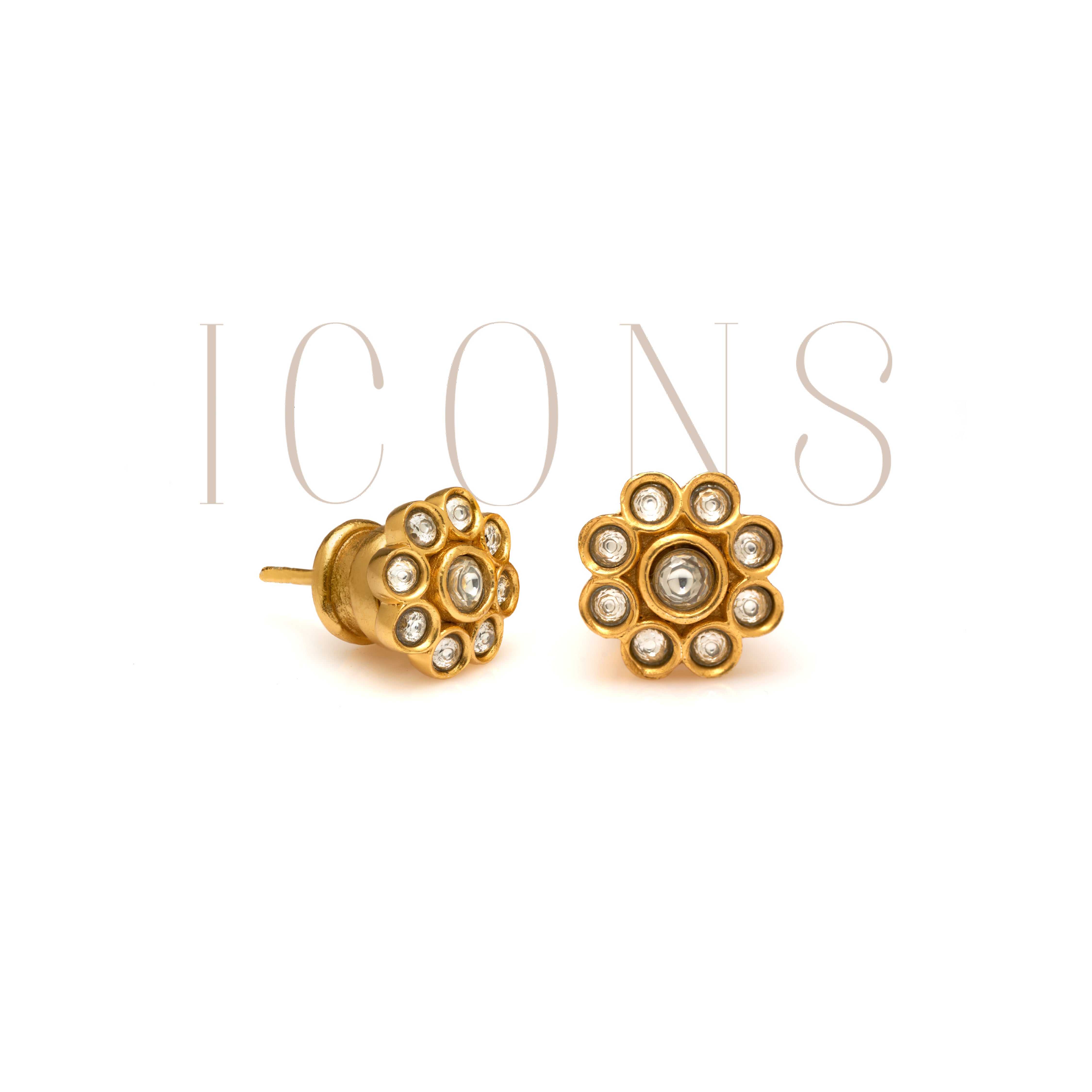 Unfaceted high-grade zirconia stones come together in delicate floral motifs to give birth to these dainty pair of studs.