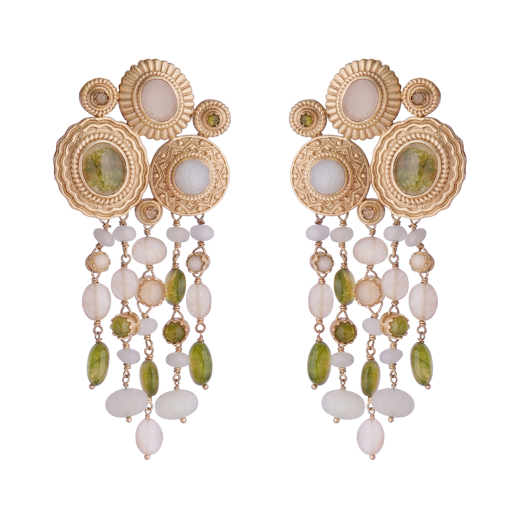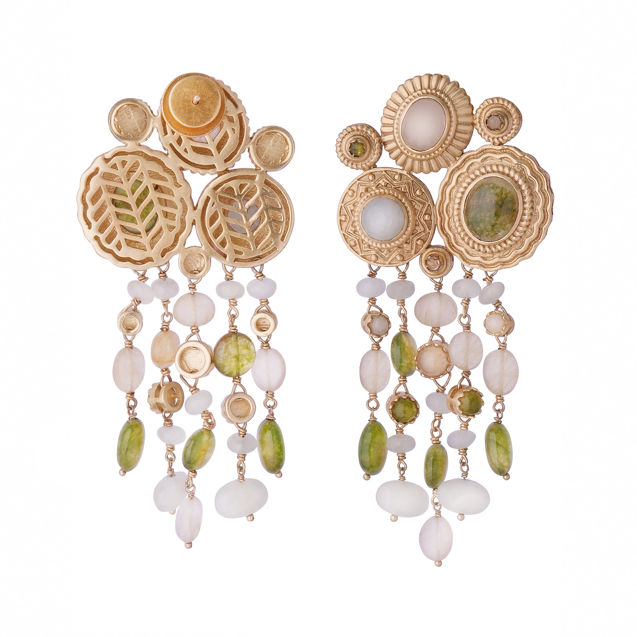 The Essence Meticulously chosen stones like golden rutile, aquamarine, and green jade come together in a stunning silhouette to create this iconic pair of multi-strand earrings. Consciously MadeYou are avoiding the generation of approximately 71,000 kg of toxic waste & 1,200 kg of CO2 emissions, that mining gold for this jewel would have caused.