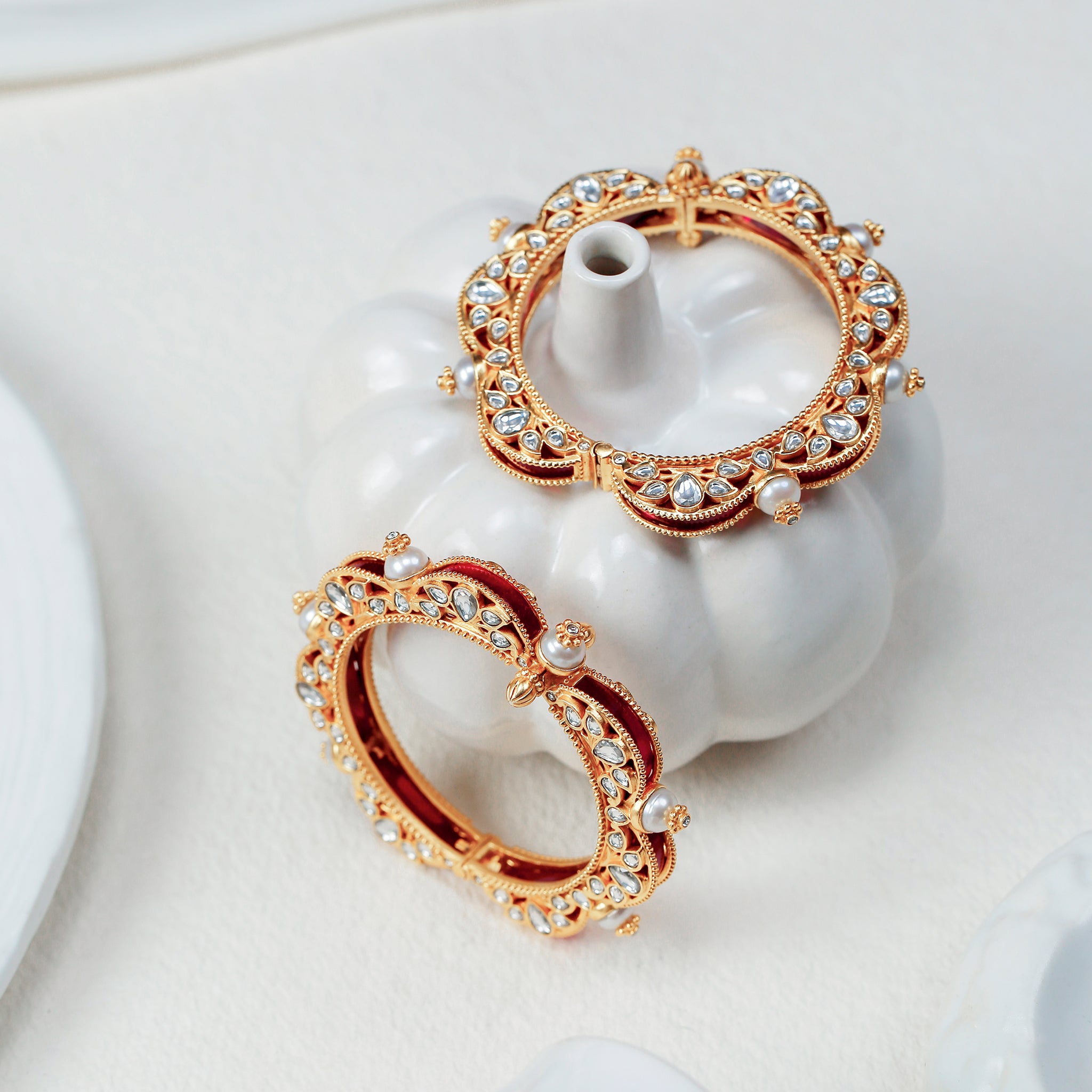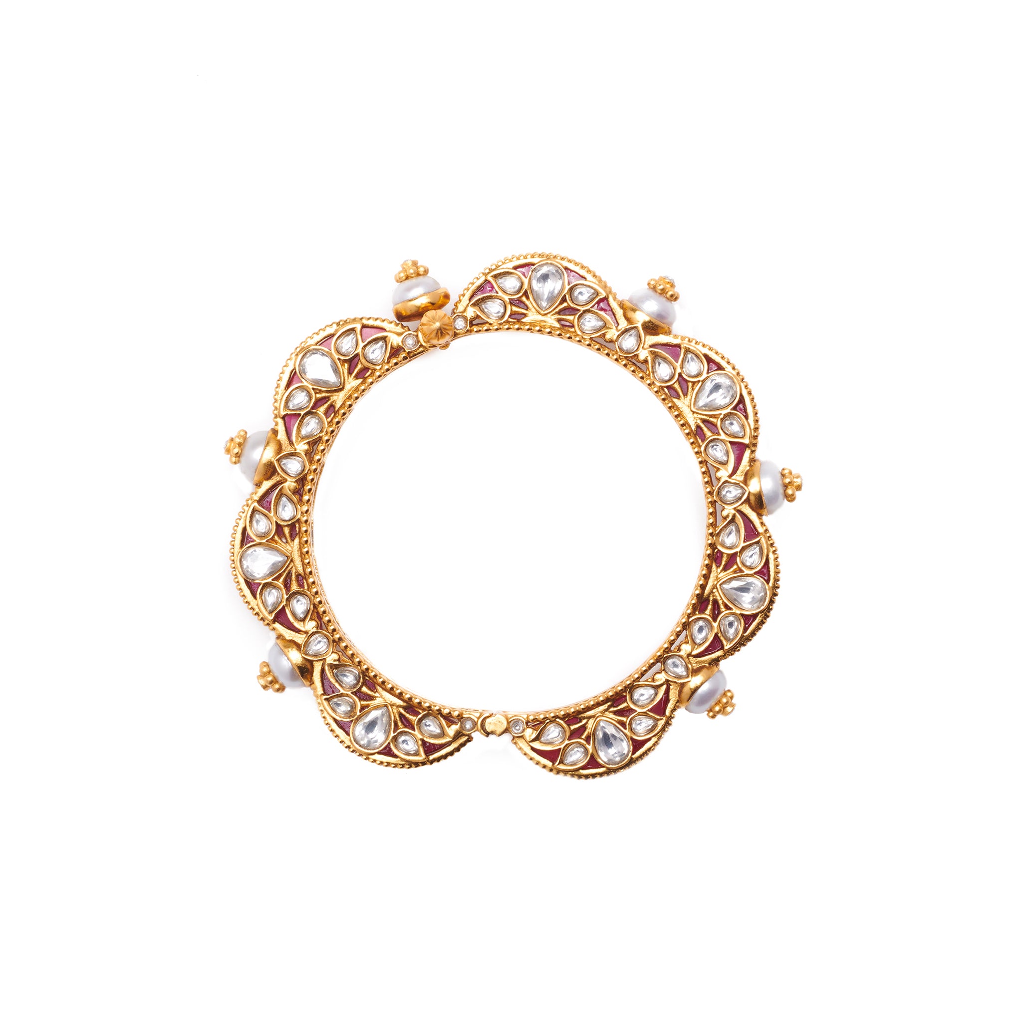 A structured bangle edged with 77 carats of dew-drop crystals and encircled with the colors of the rising sun, creating the ultimate statement piece you can own.