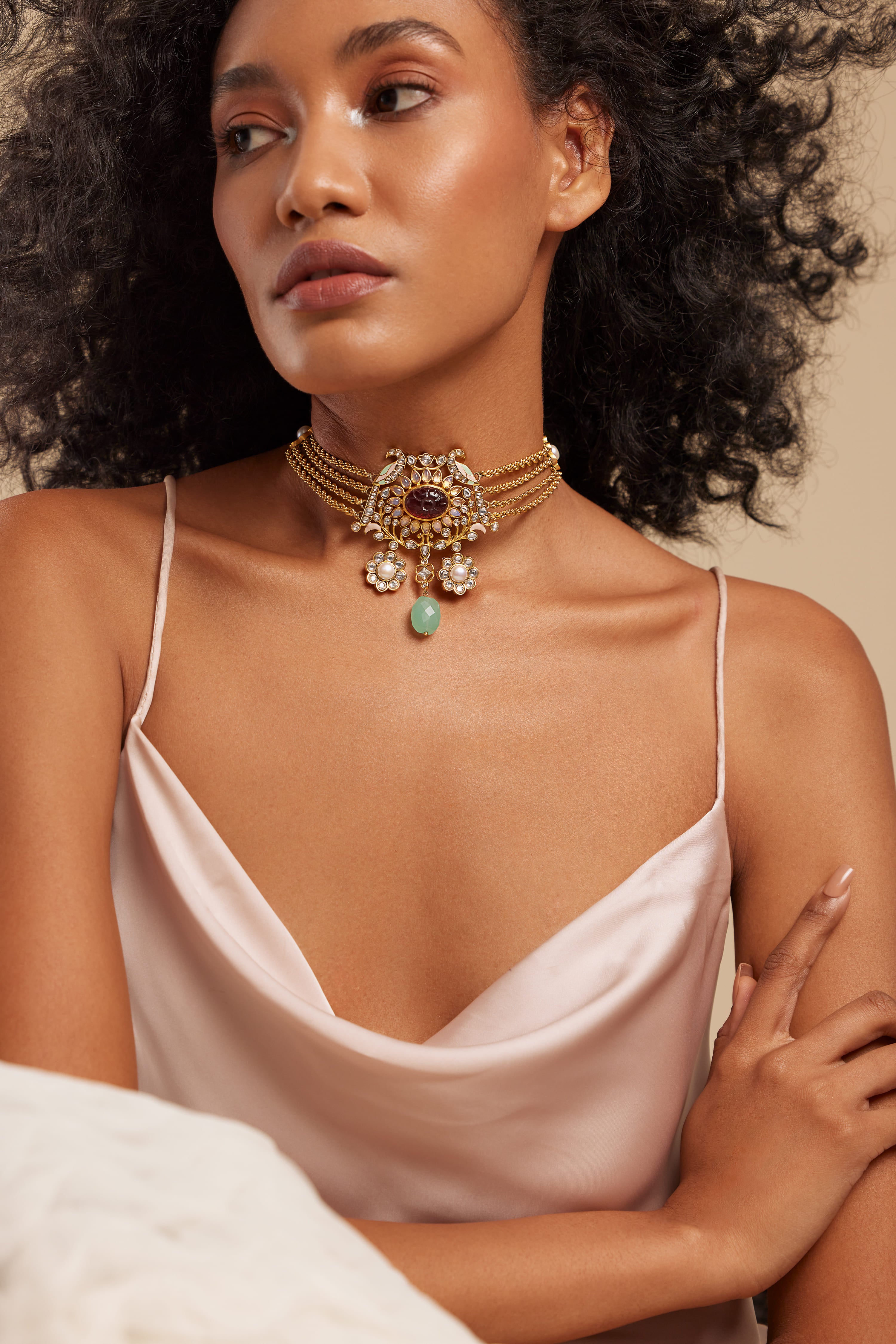 This iconic necklace, a celebration of Indian artistry, features rich semi-precious stones and is versatile enough to complement both Indian and Western ensembles.Consciously MadeYou are avoiding the generation of approximately 136374.6 Kgs of toxic waste & 2334.34 Kgs of CO2 emissions, that mining gold for this jewel would have caused.