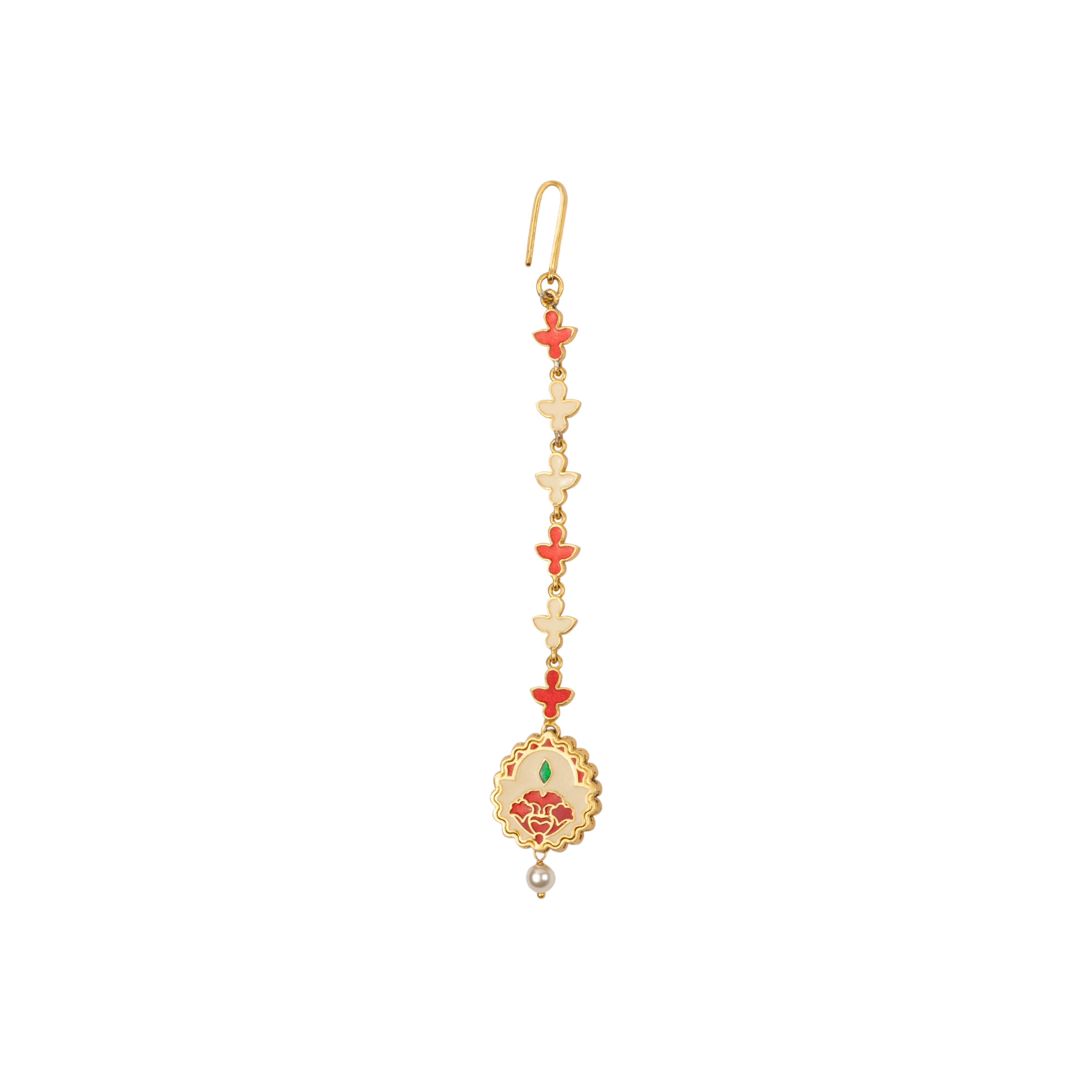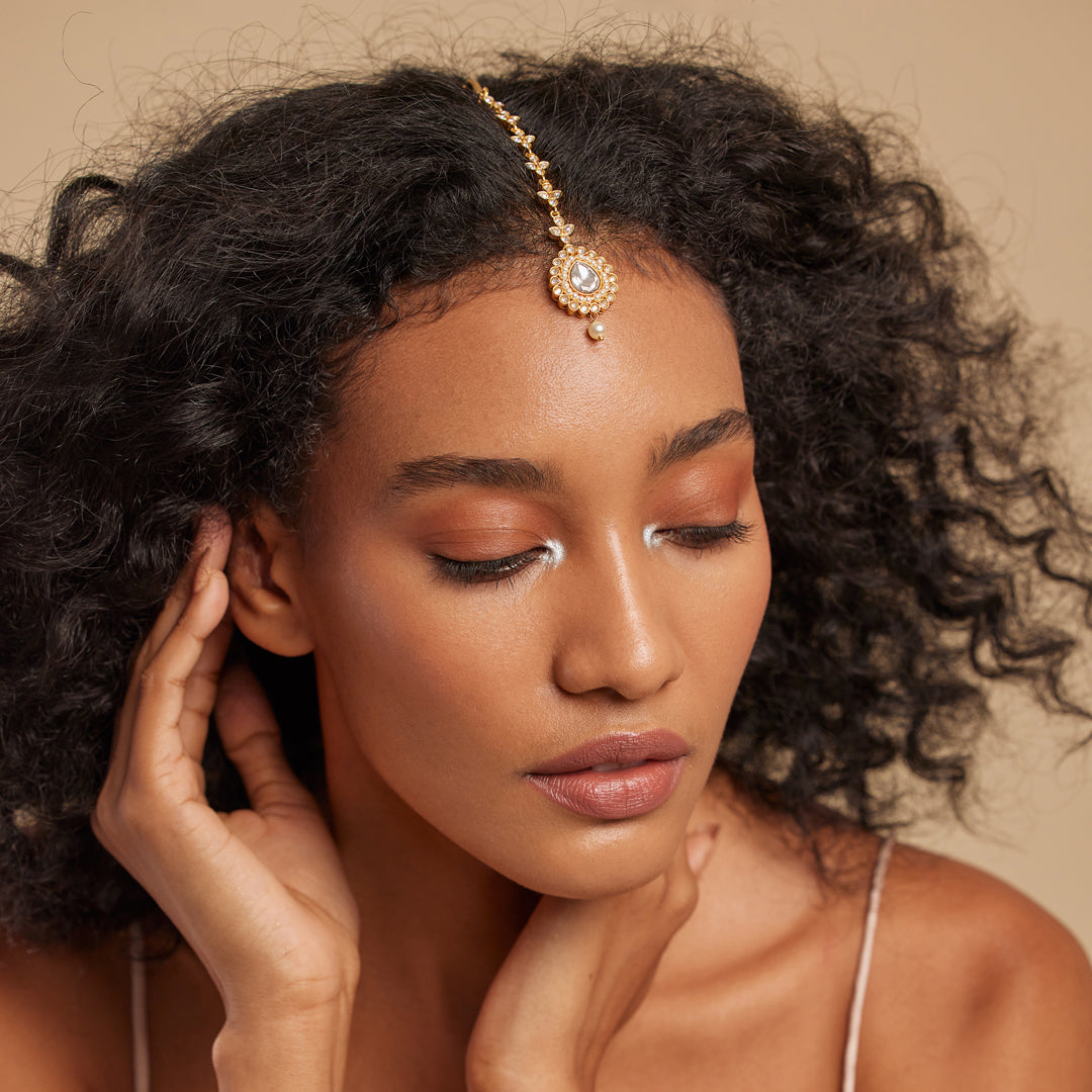 A symphony of shimmering semi-precious Kundan stones dances across this exquisite maangtika, adorned with intricate meenakari work.Consciously MadeYou are avoiding the generation of approximately 22755 Kgs of toxic waste & 389.5 Kgs of CO2 emissions, that mining gold for this jewel would have caused.