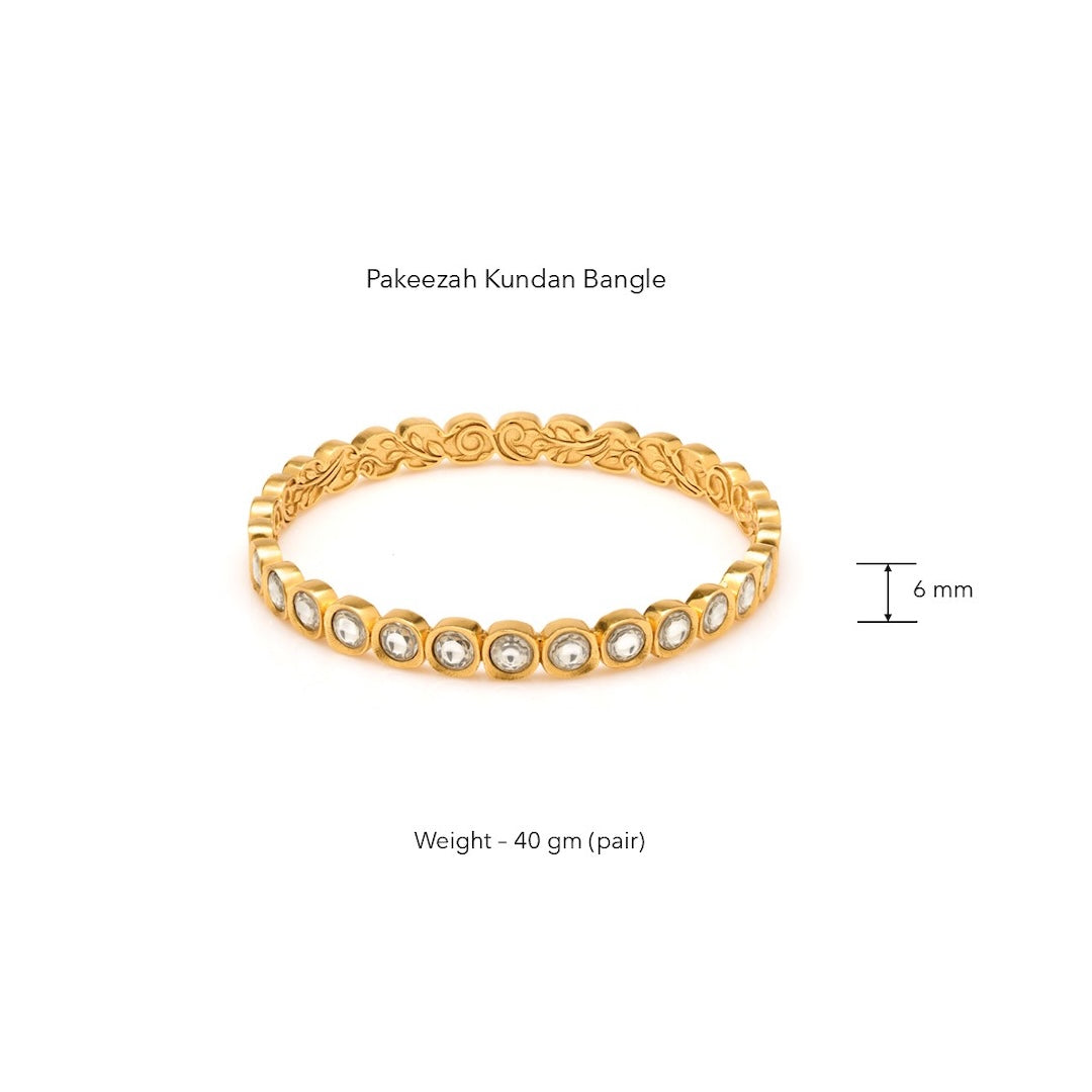 These classic Kundan bangles are inspired by the art and architecture of the Mughal era. The Choicest sparkling high-grade zirconia kundan stones have been set together to create this exquisite wristwear.