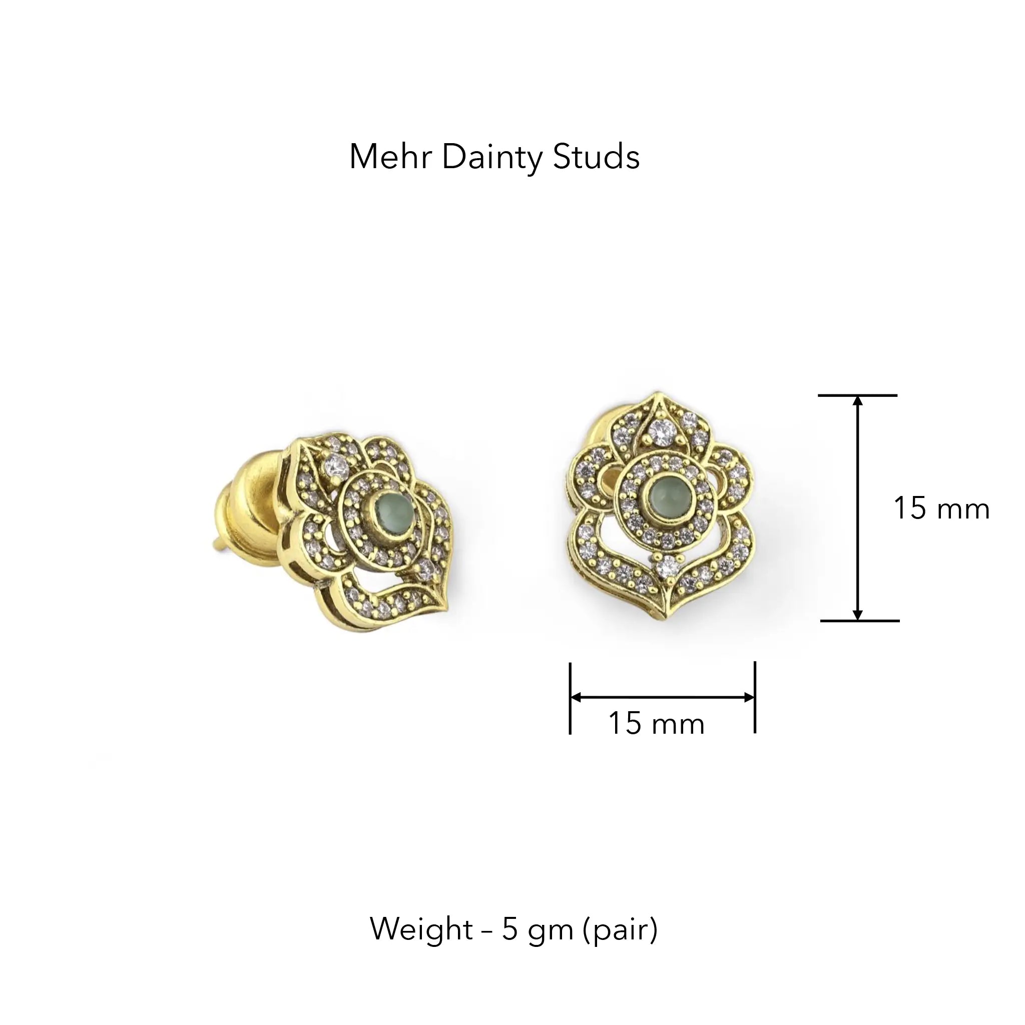 Gleaming zirconia-kundan stones and delicate Kundan work create a dreamy silhouette in these classic pair of studs.Consciously MadeYou are avoiding the generation of approximately 11100 Kgs of toxic waste & 190 Kgs of CO2 emissions, that mining gold for this jewel would have caused.
