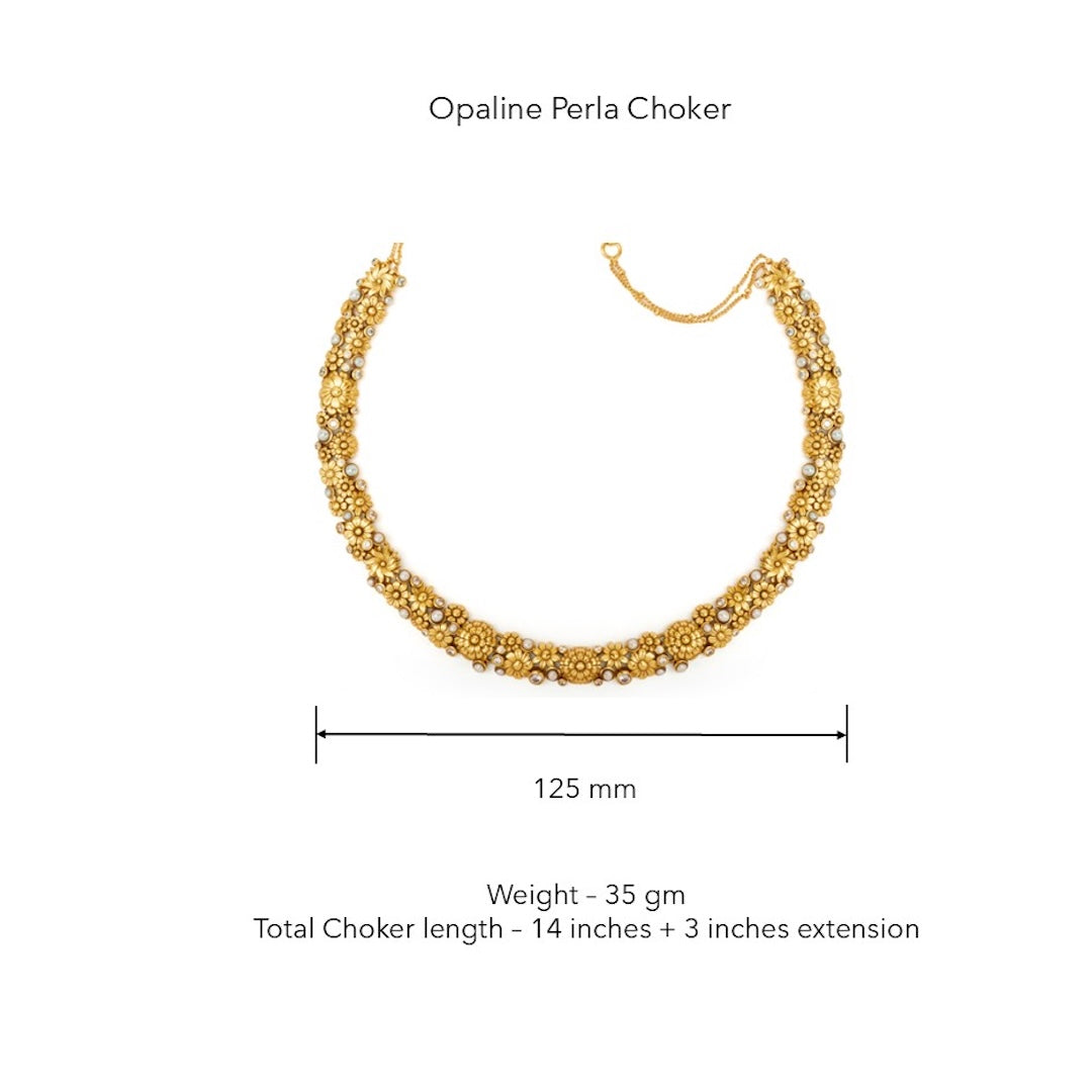 This captivating neckpiece is a true masterpiece of artistry and refinement. Dotted with dainty floral motifs, Swarovski pearls, high-grade zirconia stones -- the design vocabulary of this jewelry exudes a sense of timeless grace and sophistication.